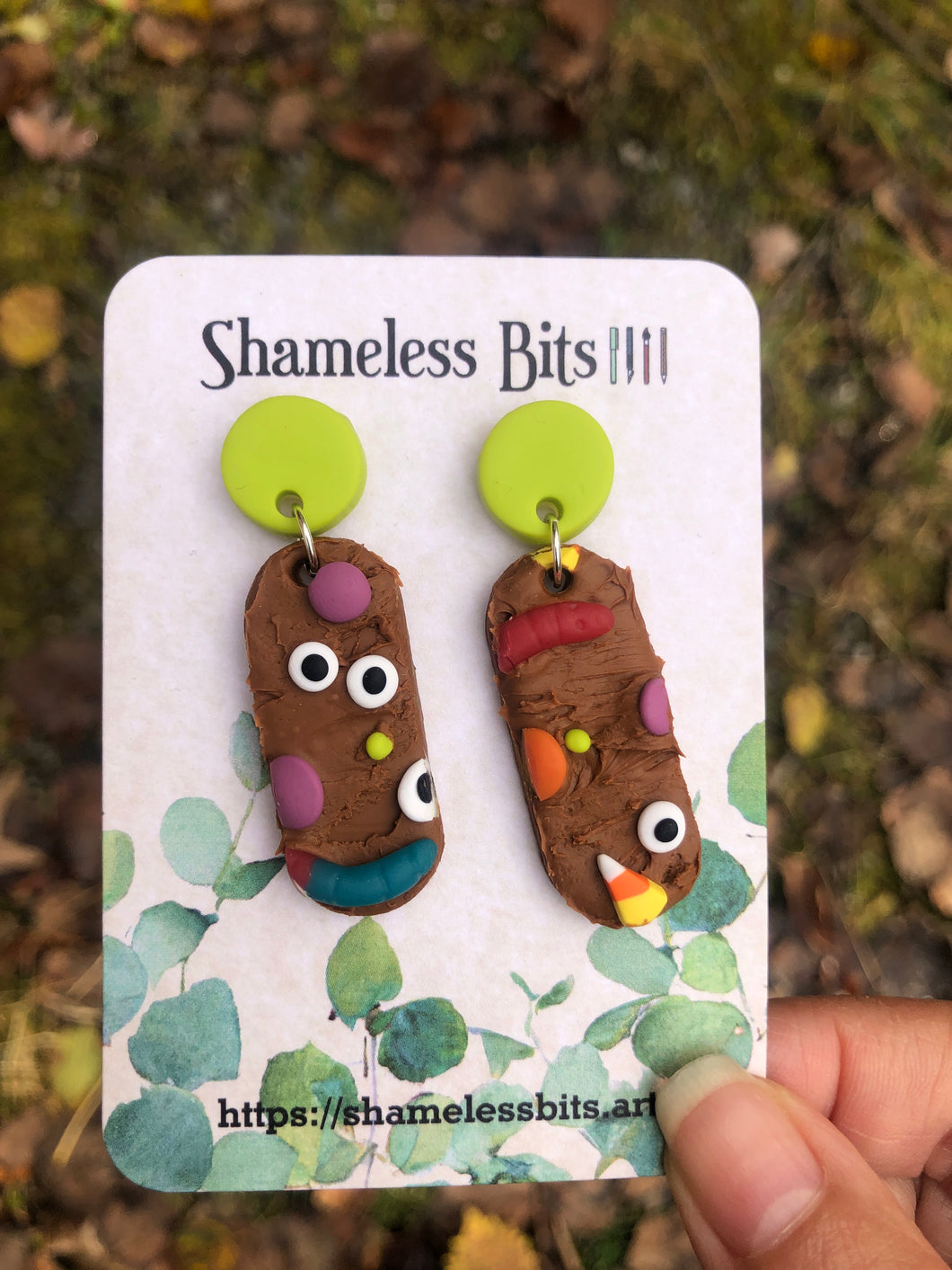 Pair of candy bark themed earrings on .925 sterling silver studs. Each pair is handmade in polymer clay and as such each is completely unique. As they are handmade there may be small nicks and uneven bits adding to the one of a kind quality.
