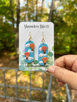 Pair of hot air balloon themed earrings on 14k gold filled hooks and findings. Each pair is handmade in polymer clay and as such each is completely unique. As they are handmade there may be small nicks and uneven bits adding to the one of a kind quality.