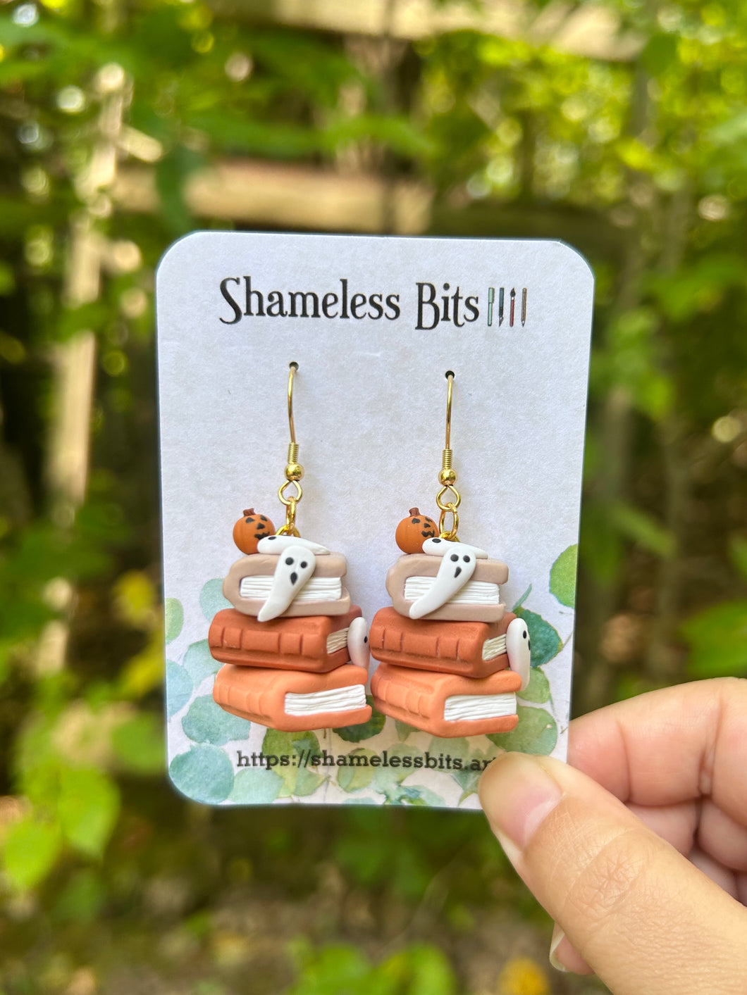 Pair of ghost and pumpkin themed earrings on 14k gold filled hooks and findings. Each pair is handmade in polymer clay and as such each is completely unique. As they are handmade there may be small nicks and uneven bits adding to the one of a kind quality.