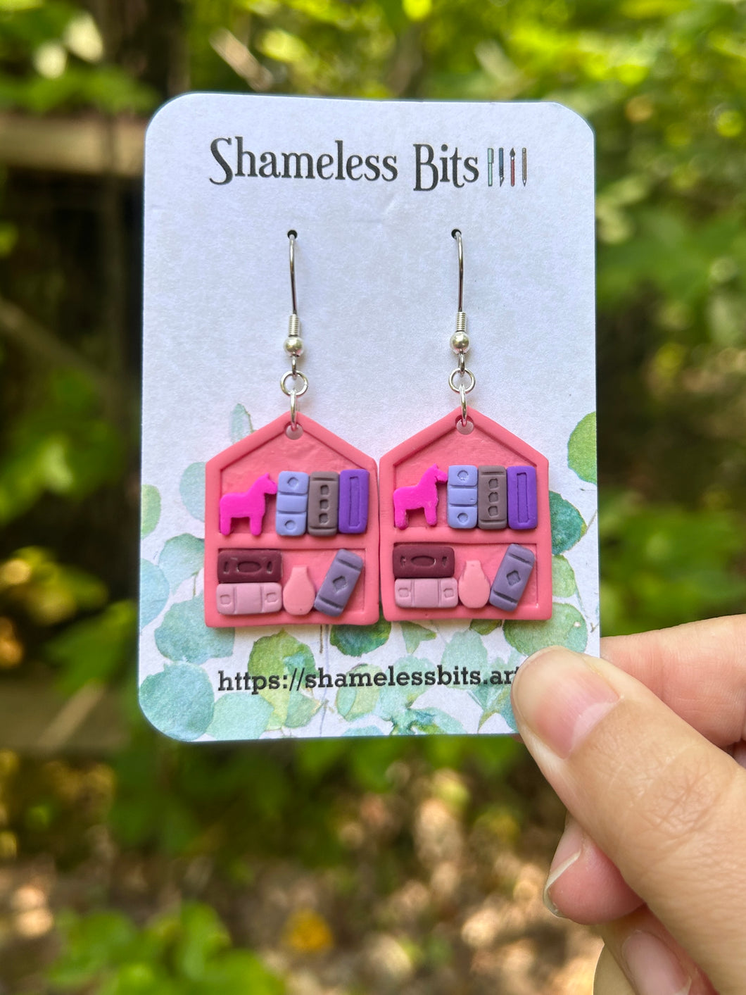 Pair of pink pony themed earrings on stainless steel hooks and findings. Each pair is handmade in polymer clay and as such each is completely unique. As they are handmade there may be small nicks and uneven bits adding to the one of a kind quality.