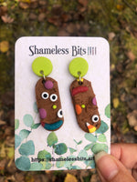Pair of candy bark themed earrings on .925 sterling silver studs. Each pair is handmade in polymer clay and as such each is completely unique. As they are handmade there may be small nicks and uneven bits adding to the one of a kind quality.